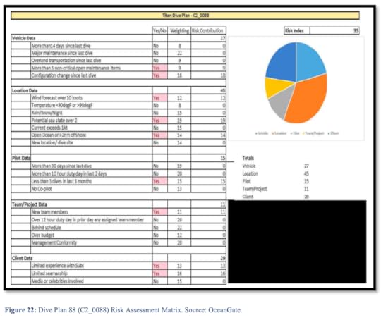 Rush assessed the risk index of the fateful dive at 35. The average risk index of previous dives was 36.