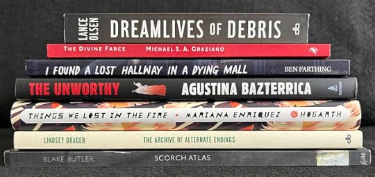 I've been out of the loop on a number of literary things the last few years, so I've been turning to Reddit to find out what people are talking about. Several of the books being discussed are already on my TBR shelf, but I fell down the r/weirdlit hole and found some really great stuff that's been triggering my synapses nicely as of late. The Divine Farce and The Archive of Alternate Endings were both great surprises in this way, so I've been switching out between horror and experimental a bit.