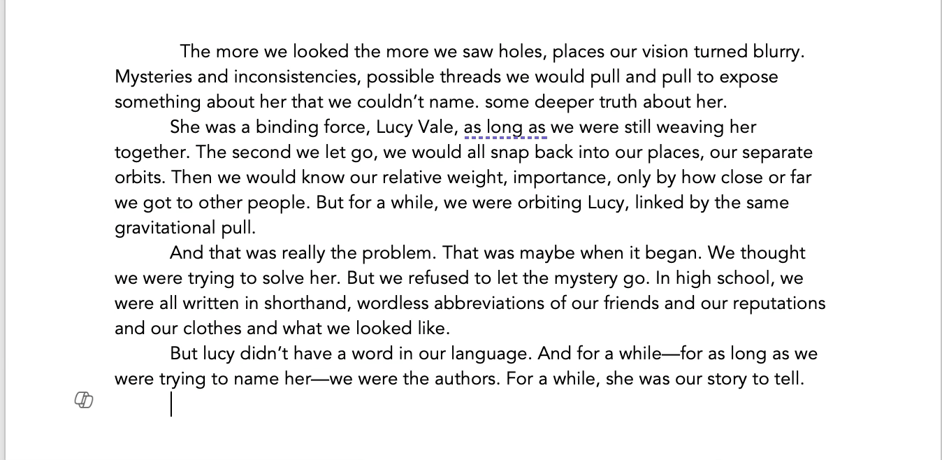 Also, the book kept changing: in scope and ambition, in theme and message. I was dealing with themes and events that were both personally resonant and, I felt, really important to handle fairly and truly. Point is, I had to go through a lot—a LOT—of pain and drafting to finish WHAT HAPPENED TO LUCY VALE.