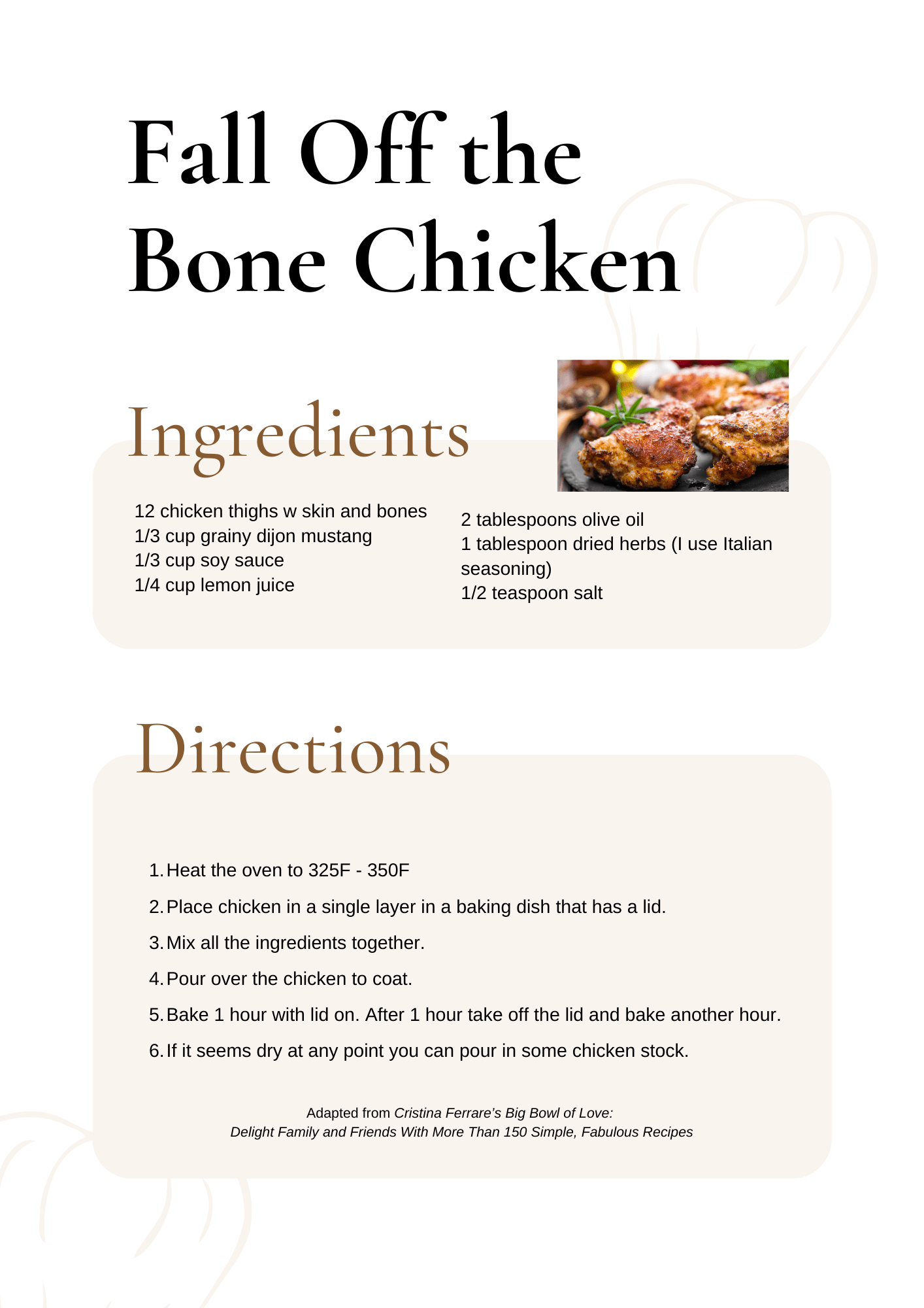 Even though it was the first hot day of spring at the cottage, I decided to cook chicken legs. They were barely thawed, but I had a great recipe that takes 2 hours in the oven, and then the meat falls right off the bone.