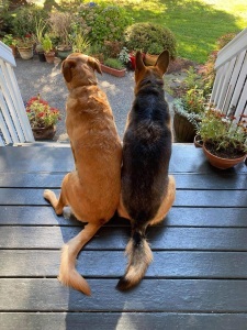 May and Millie momentarily listening to “stay on the porch”