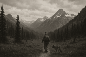 Not my new cover, but a very cool AI generated image of Pauel and his wolf friend