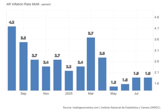 And ironically, even the artificially overvalued peso is no longer pushing down the monthly inflation rate – it’s been rising for the last three months.