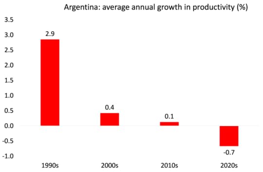 As Argentine Marxist economist Rolando Astarita has pointed out, Argentina’s underlying weakness is related to technological and productive backwardness. Except in sectors where Argentina has natural advantages, such as energy from the Vaca Muerta region or the soy and corn complexes, productivity standards are low relative to international standards. Even in soybeans, wheat, and corn, productivity is below that of US producers. These differences are essentially due to differences in the level of investment in inputs and technology.