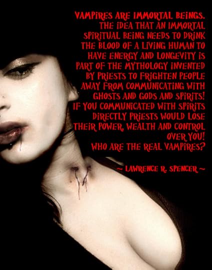 A Vampire is an Immortal Spiritual Being. He or she cannot die. Yet, they cannot inhabit a living human body either. They are conceived to be dependent on beings who inhabit living bodies. Vampires worship and covet human bodies. Their depraved state of being includes the notion that “only beings who have a body can have a real life”. The idea that a disembodied spirit needs to drink the blood of a living human in order to have energy and longevity is part of the mythology about Spiritual Beings invented by priests attempting to frighten people away from disembodied spirits! PRIESTS do not want people to communicate with spirits! If you communicated with spirits directly, like gods and ghosts, priests would lose their power, wealth and control over you!