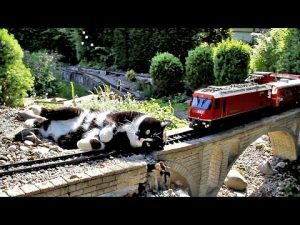German model railroad enthusiast with a cat who is unfazed. (Playlist: Katze vs. Gartenbahn)