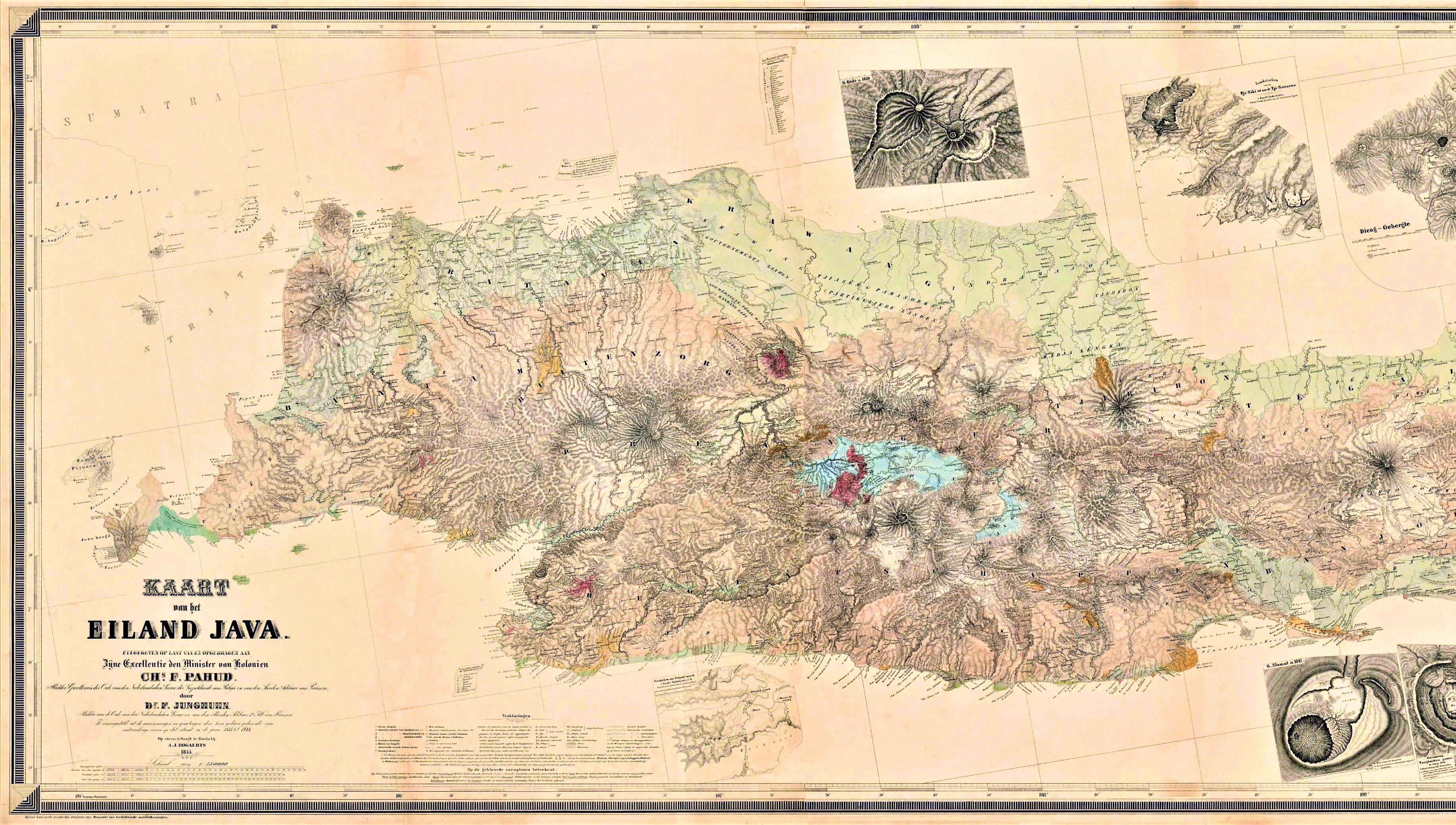 Deel van de kaart van het eiland Java waar Junghuhn jaren aan werkte.