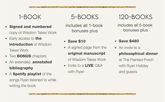 My new book, Wisdom Takes Work , comes out in 13 DAYS! If you’ve gotten anything out of my writing over the years, it would mean the world if you preorder a copy . Preorders are the single best way to support an author and help a book get off the ground. To make it worth your while, I’ve put together a bunch of bonuses—signed and numbered first editions, a signed page from the original manuscript, bonus chapters, an annotated bibliography, and more. Just head to dailystoic.com/wisdom before October 21st to claim your bonuses.