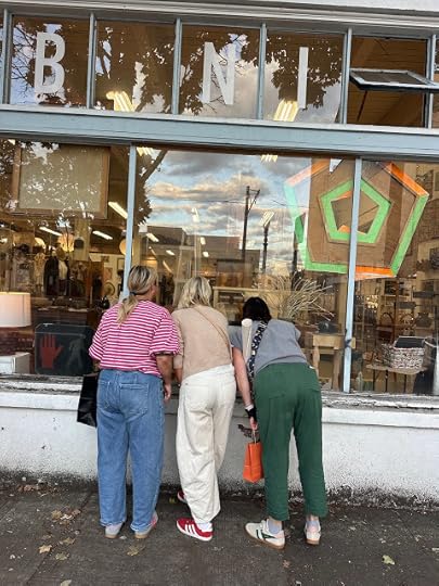 We spent a day shopping and window shopping in Burnside's furniture district,but really it was late afternoon because we spent the entire morning in our hotel room talking and talking and talking.