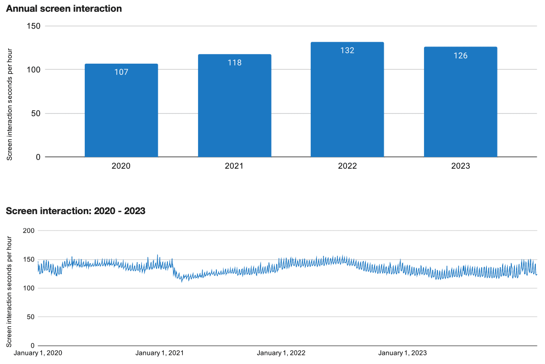 These graphs do not seem especially consistent to me. For both of them, I don’t see how 2023 could have higher annual phone motion than 2020, when the time series shows it consistently below it.