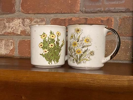I have two cups in my collection that look utterly ordinary. One is imprinted with daisies and the other has black-eyed Susans. They are small, only holding 6 ounces, both made in Japan according to a stamp on the bottom, and cost about $2 each.
