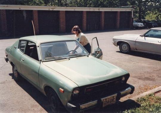 The photo above is Ellen either getting out of or into her Datson B-210 in the parking lot of my apartment, from May 1987, right around the time I wrote this song. I miss her, but we had great times together for many years, and this picture and song are happy memories.