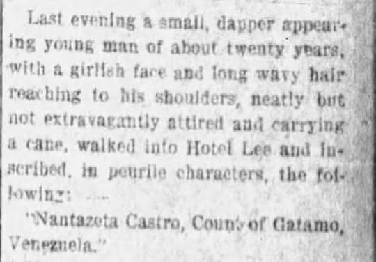 Of the dozens of newspaper accounts that describe Nanzetta’s early appearances, there is an almost consistent through-line. The descriptions, hardly of an everyday average person on the street, all seem to perfectly describe the Nanzetta of Danville, Virginia. Though the tale he weaves in those early months appears to grow and evolve, it’s impossible to know which of the details is merely an example of something more added by one reporter than another and what is truly a newly invented chapter of the “prince’s” story. By August, a few conflicting details begin to enter the picture, his name changes in spelling (though whether that is an intentional deviation by Nanzetta himself or simply an error of reporting, it’s impossible to say) and the Inca people are referenced, sometimes in addition to and sometimes in replacement of, Aztec. It’s shortly after this that things begin to break down and the “Prince of the Aztecs” narrative begins to fall apart. Before we pick apart his story, however, we must first lay down its foundational elements.