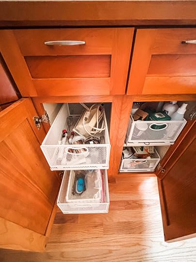 Drawer space is a little tight in my new kitchen, but these slide out baskets were a great solution. They gave me a place to store baking tools, dogs treats and other items, putting some small and fairly inconvenient lower cabinets to good use.