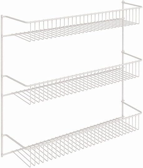 One of these adjustable racks lives in a cabinet near my stove to store my pot lids. I bought two more for the pantry.