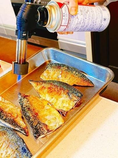 仕上げにさばを炭火バーナーで香ばしく焼き、