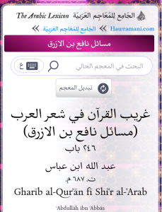 I have been mostly busy these months updating my sites and correcting, updating and expanding articles. My main project right now is the new, mobile-friendly version of The Arabic Lexicon that I have been working on since mid-September. This could have been a quick job except that I am not satisfied unless I bring every vision to life, whether it is making back-end improvements to the search system, adding new features, making the UI and features more logical and easier to use, or spending too much time on the visual design. InshaAllah soon I will get to adding new dictionaries to it, especially the Hans Wehr, which every other person on the Internet seems to bring up as being missing when my site is mentioned.
