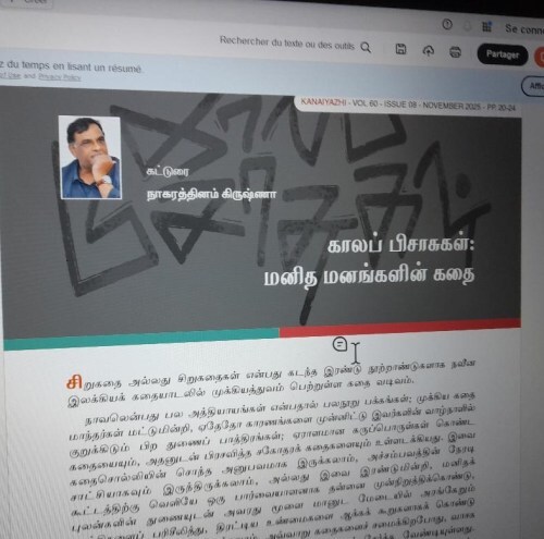 பெயருக்கேற்ப சிறுகதை என்பது சுருக்கமான ஒரு கதை, பெரும்பாலும் ஒரு நிகழ்வு அல்லது அதனோடு தொடர்புடைய சம்பவங்களின் அடுக்கை மையமாகக் கொண்டது. எனவே பக்கங்கள் கருப்பொருள்களில் மட்டுமின்றி, கதைமாந்தர்களும் பெரும் எண்ணிக்கையில் இருக்கவேண்டுமெகிற அவசியம் இதற்கில்லை. வார்த்தைகள் விரயமின்றி கதைசொல்வதே இதன் குறிக்கோள். நாவலெகிற பெருவிருந்தில் விருந்தினரை திருப்திசெய்ய இலை நிறைய வகைவகையா உணவுவகைகளை பரிமாறுகிறோம், இங்கே இரண்டொரு பதார்த்தத்தில் வந்த விருந்தினர்கள் திருப்தியுற வேண்டும், எனவே மிகுந்த துல்லியமும் ஆழமும் கதைசொல்லிக்கு அவசியமாகிறது. போதாதற்கு கதைசொல்லிக்கு ஏனைய கலைஞர்களைப்போலவே, தொடர்ந்து தன் துறைசார்ந்து இயங்க வாசகரிடமிருந்து உடனுக்குடன் எதிர்வினையென்கிற எரிசக்தியும் வேண்டியுள்ளது. அண்மைக்கால மேற்குலக கதையாடலில் ஆரம்பம் முடிவு, இடையில் கதைசொல்லும் போக்கில் காலவரிசை என்கிற நியதியை அல்லது இலக்கணத்தை மீறும் போக்கை பரவலாகக் காண்கிறேன், பரிசோதனை முயற்சிகள் ஏராளம், தமிழில் அத்தகைய கதைசொல்லிகளை காண்பது அபூர்வம். அத்தகைய அபூர்வ கதைசொல்லியாகத்தான், இச்சிறுகதை ஆசிரியரை பார்க்கிறேன்.