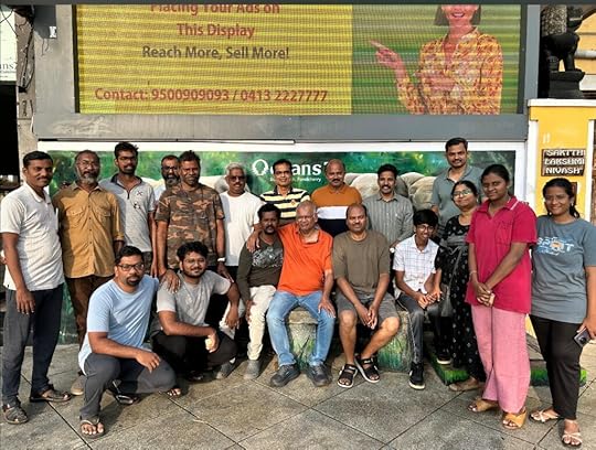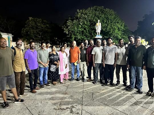 நண்பர்களுடன் கூட்டமாக புதுச்சேரியின் கடற்கரைக்கு சென்று ஏழு மணி வரை பேசிக் கொண்டிருந்தேன். சேலம், பெங்களூர், ஈரோடு, கோவை, சென்னை என பல்வேறு ஊர்களில் இருந்து வந்த நண்பர்கள் திரண்டிருந்தனர். ஏ.வி.மணிகண்டன் மேல்சித்தமூர் சென்றிருந்ததாகச் சொன்னார். கிளம்பும்போது அங்குள்ள சமண மடத்தின் பட்டாரகர் பார்த்து எங்கே செல்கிறீர்கள் என்று விசாரித்ததாகவும், அவரிடம் ஜெயமோகனுக்கு விருது வழங்கும் விழா என்று சொன்னதாகவும், அப்போதுதான் பட்டாரகர் என் வாசகர் என்று தெரியவந்ததாகவும் சொன்னார். பட்டாரகர் ஒரு வாழ்த்துச்செய்தி எழுதி எனக்கு கொடுத்தனுப்பியிருந்தார்.