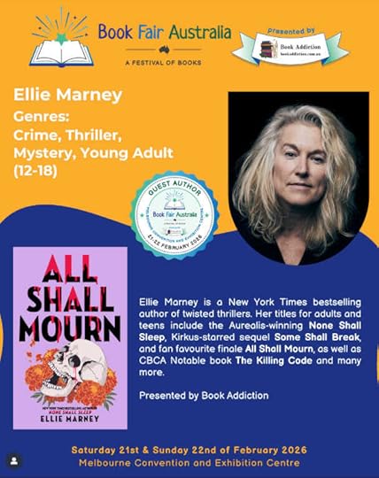 2026 events? Already?I know – wild, isn’t it? But I wanted to let you know early that I’ll be at Book Fair Australia in February next year. Book Fair is being held in Melbourne for the first time, and it seems to be getting bigger each time, so come along and check it out - I will most definitely have copies of All Shall Mourn with me, and possibly copies of No One Is Safe as well.