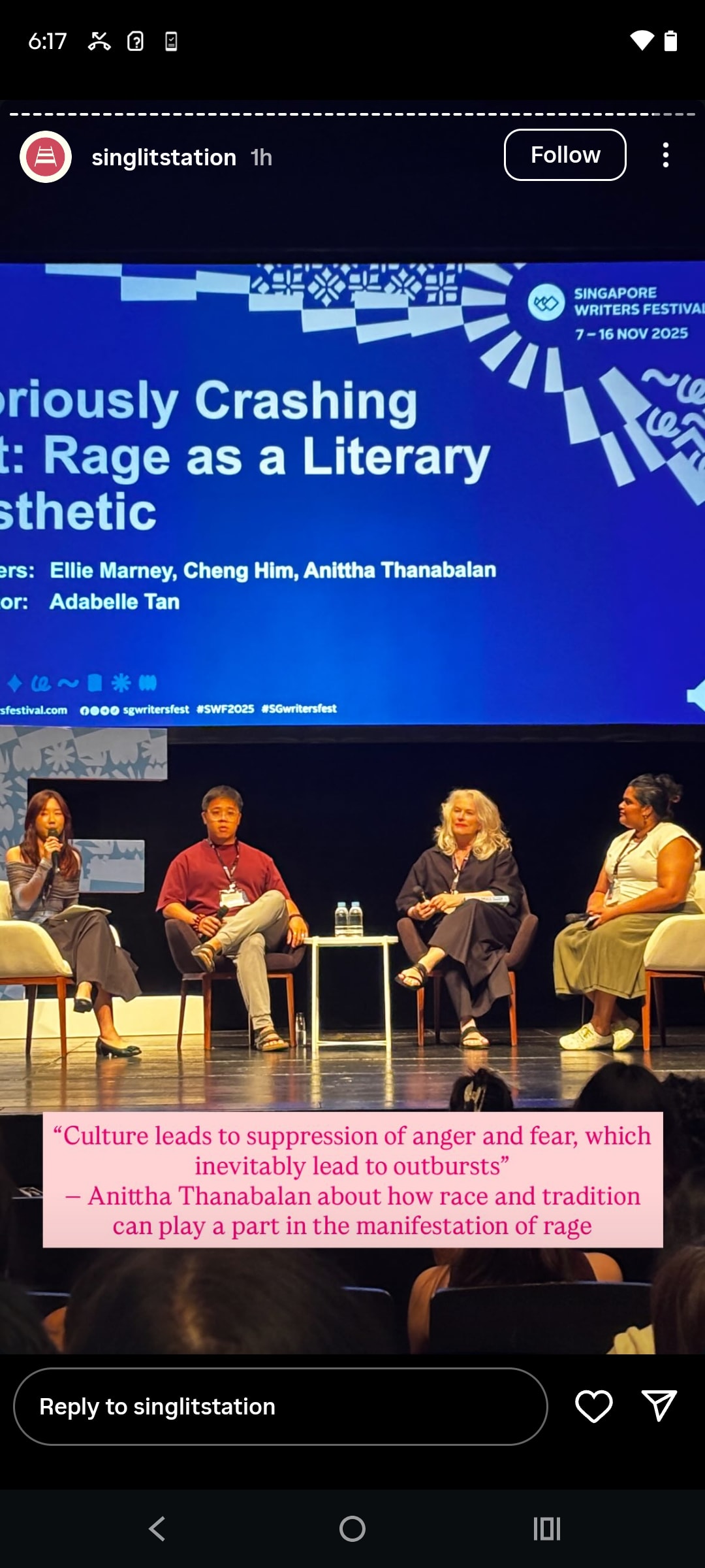 If you ever get a chance to go to Singapore Writers Festival, I encourage you to check it out!