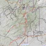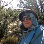 During the final climb to the crest I was loudly clearing my throat, preparing to spit out some congestion, when I suddenly saw another hiker right next to me on a boulder, waiting for me to pass on the narrow trail. He had a cowboy accent and wasn’t very friendly, but it transpired that he was a through hiker finishing the Canada-to-Mexico trail. He said there were three more not far behind, and shortly I came upon another guy, very friendly this time. I asked him if he’d camped on top last night, and if he’d been snowed on. “Wintry mix”, he replied. He said his partner was right behind, and after another hundred yards I saw a tall, 30-something woman striding down the trail, ignoring me and jabbering into her smart phone. That is so annoying.