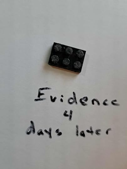 I reported the broken gravel to the mall, and they asked me to file an incident report which involved going back to the scene of the crime to show a security guard the area. It was there, while pointing out the crosswalk danger zone, that I looked down and found one sole Lego, missed by one of the guardian angels that picked me up.