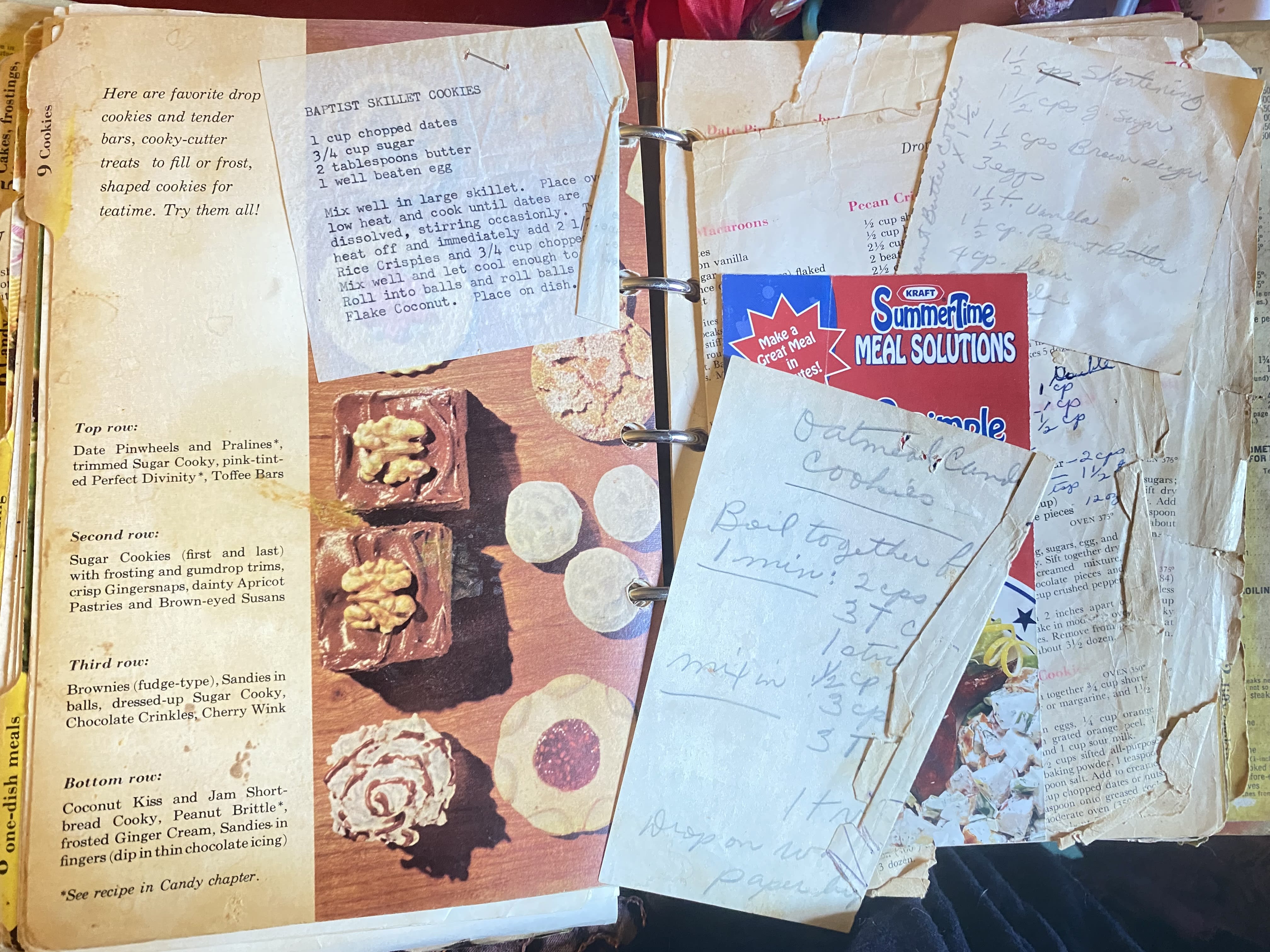 It’s all in the Better Homes and Gardens Cook Book circa 1950, that Sacred Tome of the Savoury and Sweet. Her notes are everywhere, along with grease spatters and little spots of dough, love from an oven.