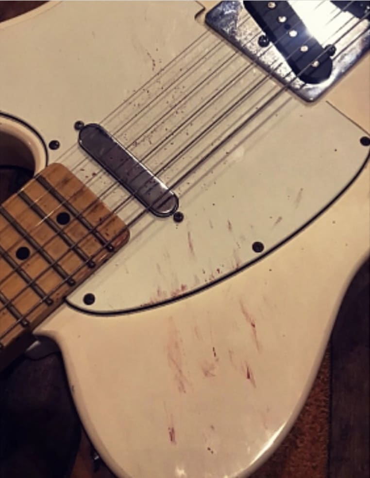 Blood on my tracks. Photograph by Ken GormlyAs some random dude on Reddit stated about Jack White’s guitar: ‘I have to admit that his white guitar covered in blood is a damn cool look.’
