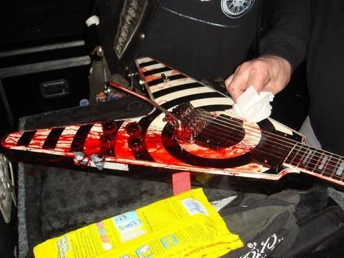 I achieved a kind of perverse rock’n’roll fantasy moment on the tour we just finished, where I played my guitar with enough abandon to draw blood. Stage adrenalin must have kicked in, or maybe I was high on the music, but I couldn’t even feel it.