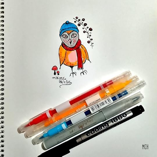 Για την αποψινή μας καλλιτεχνική πρόκληση, επιλέξαμε ένα θέμα πιο απαιτητικό δημιουργικά, με περιορισμό χρόνου (speed drawing, μεταξύ 15-30 λεπτών) και αντικείμενο τα ζωάκια της εξοχής, αλλά και με βασική προϋπόθεση να γίνουν τα σχέδια απευθείας με μελάνι, χωρίς προσχέδιο με μολύβι. Η Βερίνα εμπνεύστηκε από ένα παλιό βιβλίο εντομολογίας για να ζωγραφίσει έναν μεταξοσκώληκα πάνω σε ανθισμένο κλαδί δέντρου, ενώ η δική μου ζωγραφιά, σε στυλ σκίτσου περισσότερο, δείχνει μια μικρή κουκουβάγια με χει...