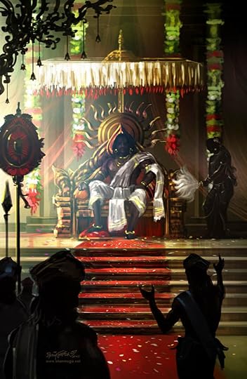 மயனீர் மாளிகையில் அரங்கேற்றப்படும் நாடகம், சுயபகடியின் மூலம் துவங்கும் ஒரு அங்கத சுவை மிகுந்த நாடகம் அதன் இறுதியில் எப்படி திரௌபதியை இளைய யாதவனை என அவர்களின் நோக்கத்திற்கு ஏற்ப, பார்ப்போரின் உள்ளத்தில் நீக்கமுடியாத ஆளுமைகளாக பதியவைக்கப்படுகிறது என காட்டும்விதம் அருமை.நீர்மாளிகையா நிழல் மாளிகையா என அனைவரின் உருவங்களை அருவங்களாய் , அருவங்களை உருவங்களாய் , என்னவென்றே புரியாதவகையில் பல மாயங்களை காட்டிய மாளிகையில் அங்கு வந்திருக்கும் அனைத்து மன்னர்களும் பார்ப்பது அவரவர்க்கு ப்ரத்யேகமான காட்சிகளை. நிலையழிந்து நிற்கிறார்கள் அனைவரும்.