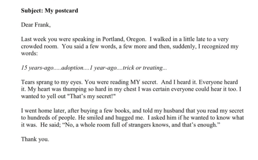 The person wrote the following in reaction to my secret: “This quote, part o...