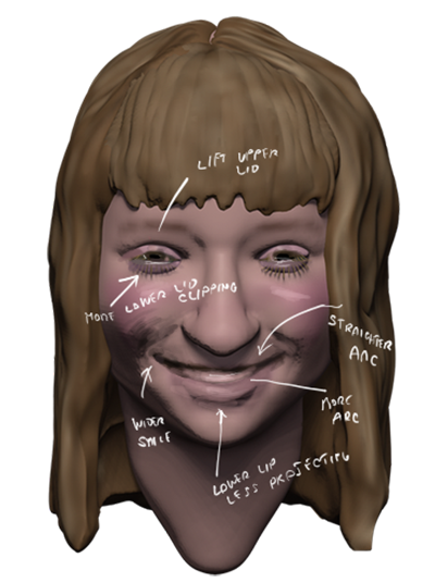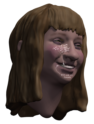 Gary was very generous over the years in giving me tips and pointers, especially on facial expressions. Earlier this year, I sent him scans of a 3-D reference model I was constructing for a character in my current Vortex book. I was having some trouble constructing a convincing smile, and Gary sent a sketch back with his notes: