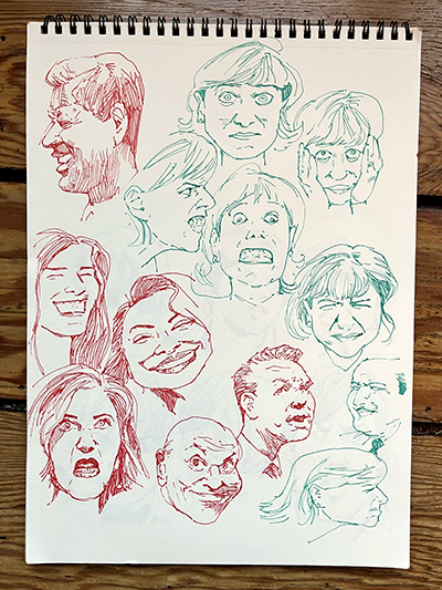 I’ll do my best, Gary. The birds may be a low priority, but I have taken the bit about draw, draw, draw, to heart. Since I can always stand to improve my facial expressions, I have been filling pages of my sketchbook with my own renderings of facial expressions I see around, mostly in instructional books and on Facebook: