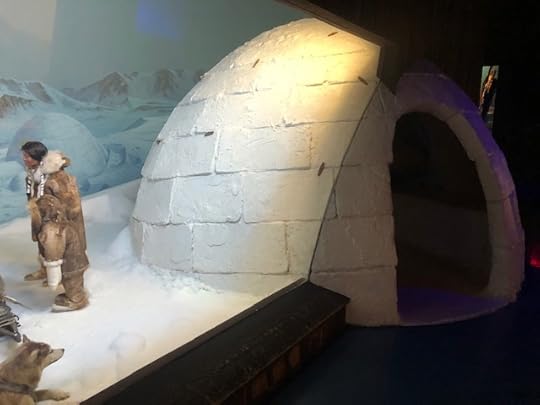 “Life inside the igloo was cramped but comfortable,” the placard read. “Seal oil, burned in stone lamps using moss or animal hair wicks, provided heat and light. Fur-lined snow benches provided comfortable working and sleeping areas.”