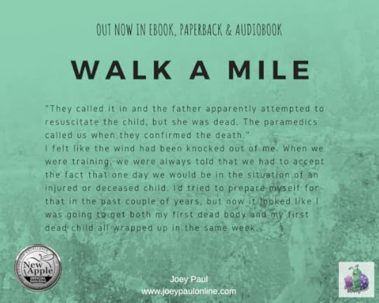 http://www.books2read.com/WAM[ID: A dirty green background with the title WALK A MILE at the top and out now in ebook, paperback, and audiobook just above the title The except reads:
