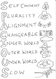 Check out his post for more detail of the kinds of questions you might ask yourself to feel into whether you’ve given enough attention to each of these vital aspects. We made an image for the spacious acronym to illustrate what each word means…