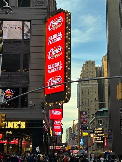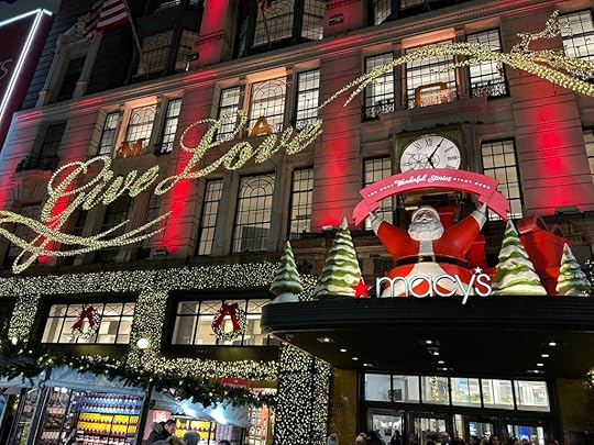 Macy’s does not have the market cornered on windows, but I would say they are the best. We also went to Raising Cane, the chicken place. Their flagship store in Times Square is 8,000 sq. ft., and it was hopping. We enjoyed lunch with approximately the number of people in the state of Rhode Island while the restaurant’s halls were being decked based on A Christmas Story complete with the leg lamp. All the while a DJ was spinning Christmas music as we consumed those yummy chicken fingers. It was a little piece of insanity, but we could get in and eat and take a load off our feet for a few.