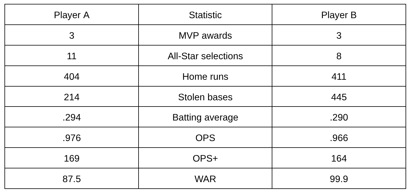 Player A is Mike Trout, undoubtedly a Hall of Fame-caliber player.