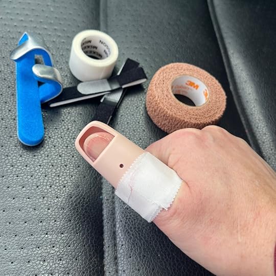 And the doctor seemed to agree with my fastidiousness. He gave me a better splint and some first aid tape and told me to come back in four weeks for a follow up and new x-rays. His assistant gave me some Coban tape and some buddy strips for the splint.