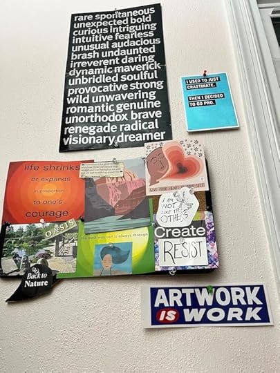 Image Description: The author’s inspiration wall that is a mix of images and words, including a 2025 vision board that contains the quote “The best way out is always through.”