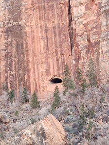 Window to the tunnel.It is the off-season so we didn’t have to take a shuttle and could drive our own vehicle up the Zion Canyon. The views were breathtaking but we were disappointed that all buy one trail didn’t allow dogs. Which meant we couldn’t get out and explore with the dogs.