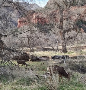 Our second day we drove to Zion Park. First we drove up through the tunnel which was interesting. We couldn’t figure out why we saw what looked like a tunnel entrance in the side of a cliff with nothing leading up to it. After going through the tunnel, we realized it was a “window” in the tunnel to “light” the tunnel. After going through the tunnel we saw a small herd of Mountain goats. half a dozen people were parked or standing by the road taking photos of them.
