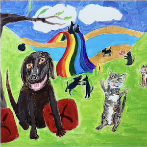 The archetype guidebook for the Bridge card suggests going deeper and learning more about Bifröst — the burning rainbow bridge of Norse mythology — but the Rainbow Bridge associated with pets and their passing is a more recent phenomenon.