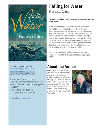 Falling for Water is a lyrical and deeply moving novel that feels both ancient and urgently relevant. Francesca Cairns writes with quiet power, drawing the reader into Kayla’s sacred connection with water, ancestry, and land. This is a story that honors feminine strength, Indigenous wisdom, and healing across generations. Every page feels intentional and reflective, inviting you to slow down and truly listen to nature, to memory, and to yourself. A stunning, thoughtful read that lingers long after it ends.