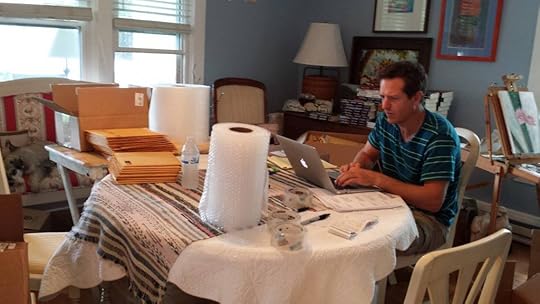 Here I am taking orders from my website. I used to sign books and ship them to readers anywhere in the world. It started innocently enough, but quickly became a full-time job on top of all the writing duties.