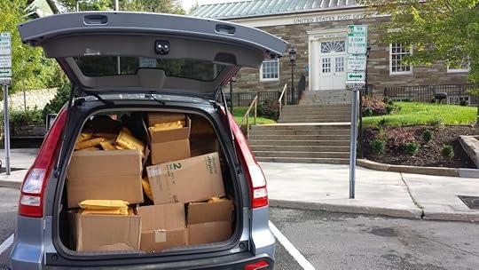 No joke, this was my USPS runs TWICE A WEEK! The ladies at the counter all knew me and went from dreading seeing me to fighting over who got to help me. It would take hours, and they said it really made the day go by faster. I’d sit at the counter and answer emails or even work on a novel.