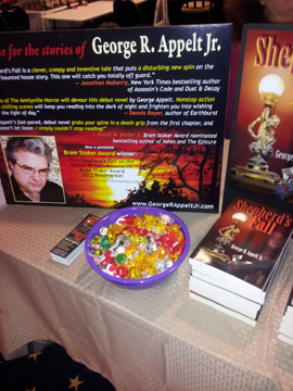 My table at 2012 Horrorfind I have attended this convention in the past, but never from behind a vendor table. So this year selling and signing Shepherd’s Fall, gave me a whole new appreciation for all the effort that goes
