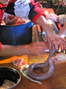 Making blood sausage at Zjelko and Andjelka’s house.